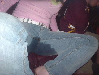 sa culotte est inondée de pipi au vu et au su de tout le monde.