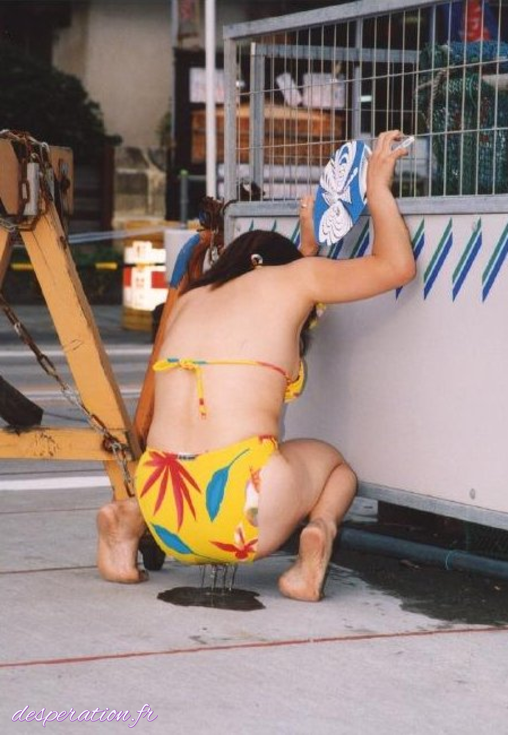 La vessie pleine, elle ne peut éviter l'accident dans son bikini sexy et elle ne voit pas où est le problème.