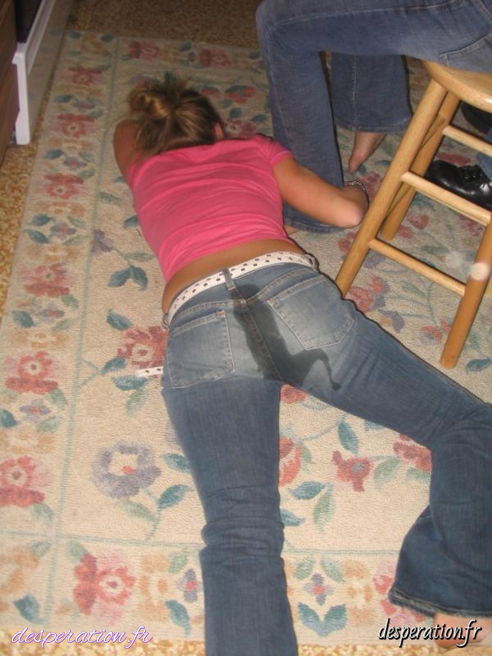 Alors qu'elle a la vessie pleine à ras bord, elle ne peut se retenir de se pisser dessus!