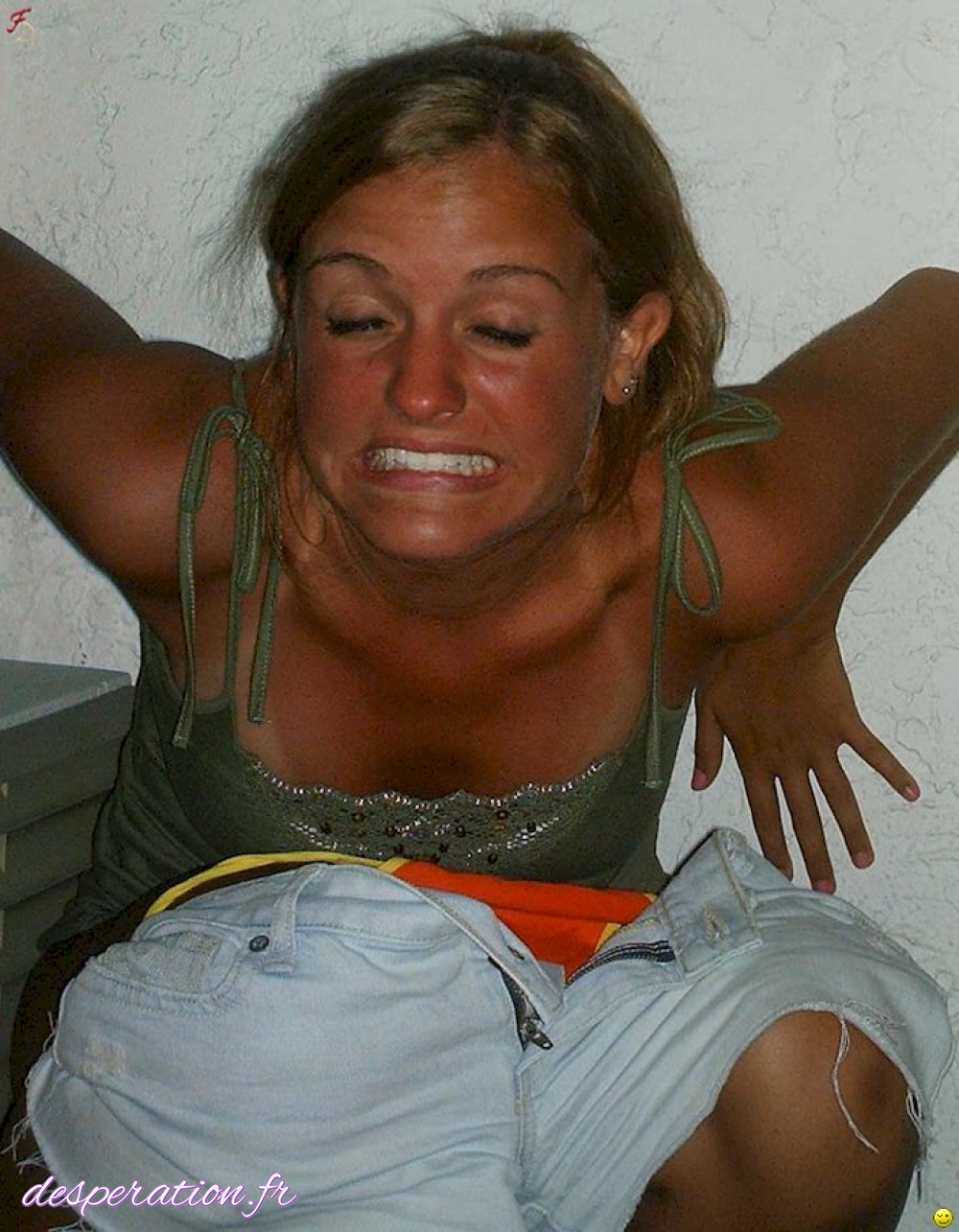 Désespérée, elle ne peut se retenir de faire pipi dans sa culotte humide