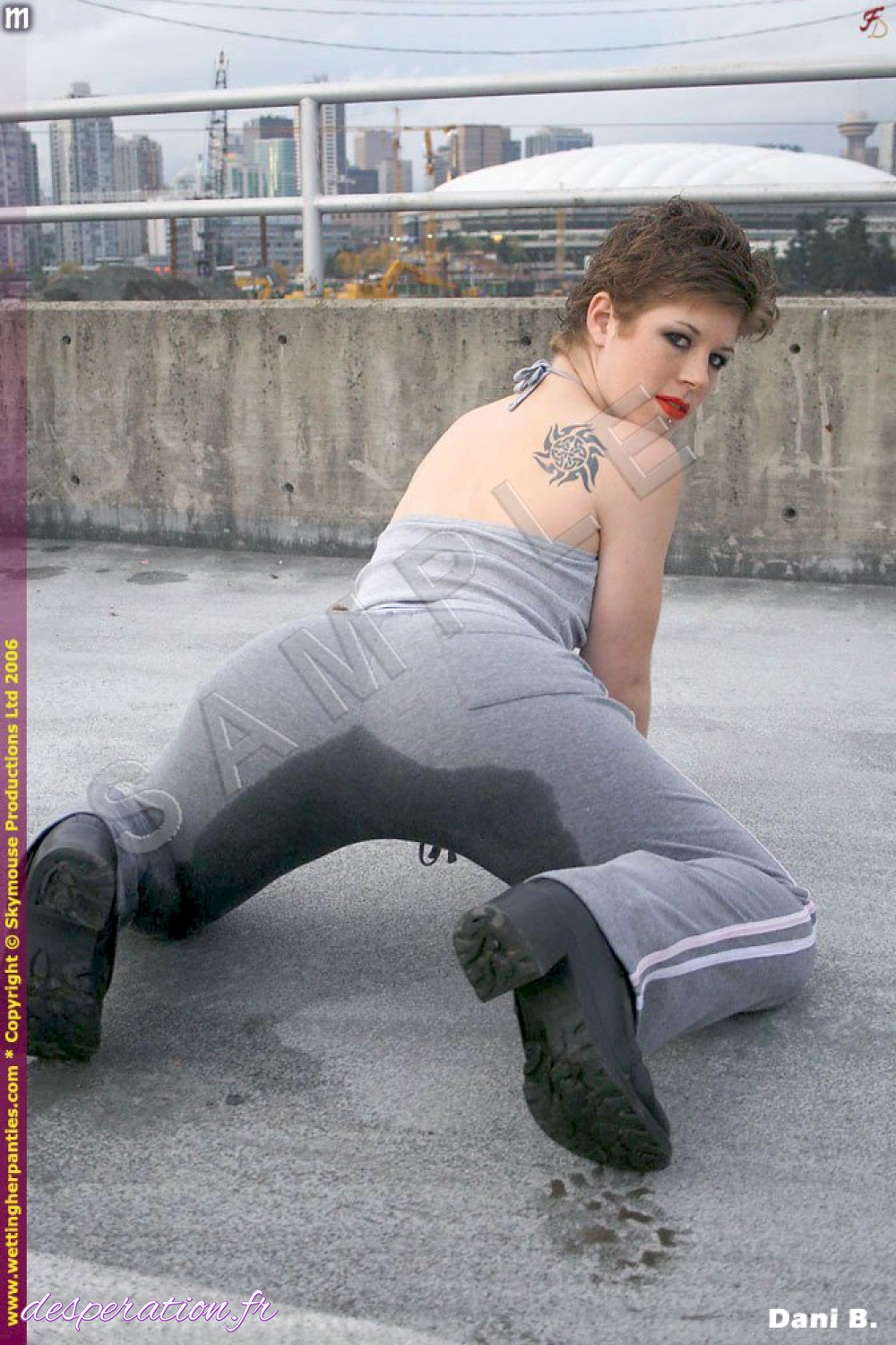 La vessie pleine, elle ne peut se retenir de pisser dans sa culotte