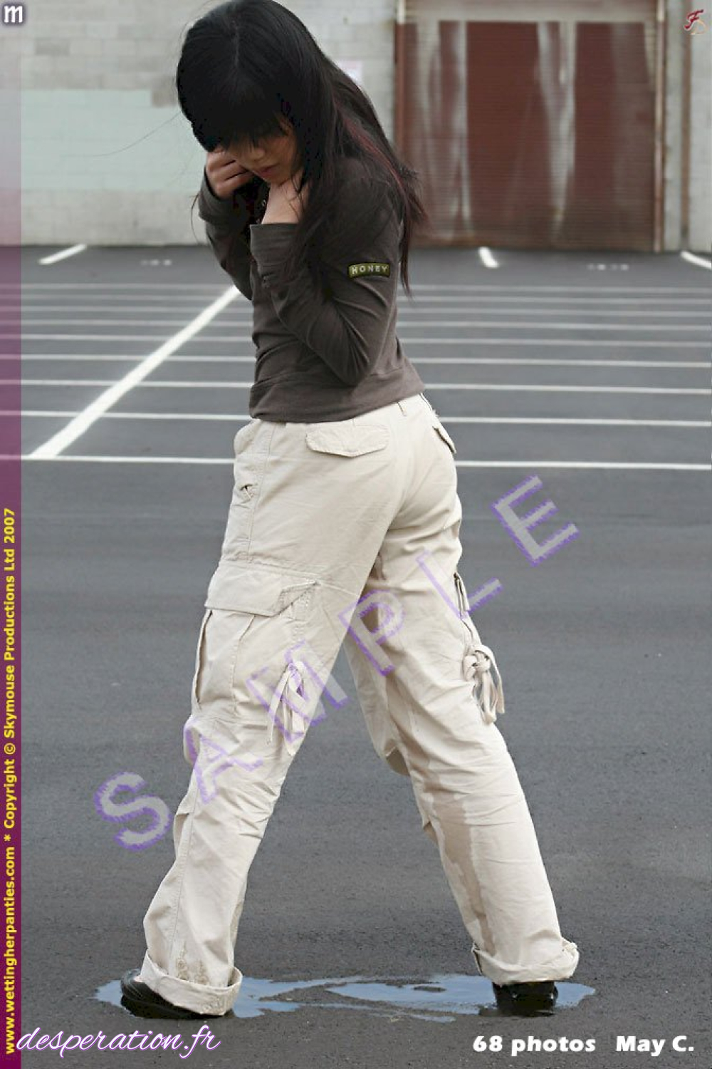 Désespérée, elle ne peut empêcher l'accident urinaire dans sa culotte bien collée à sa chatte