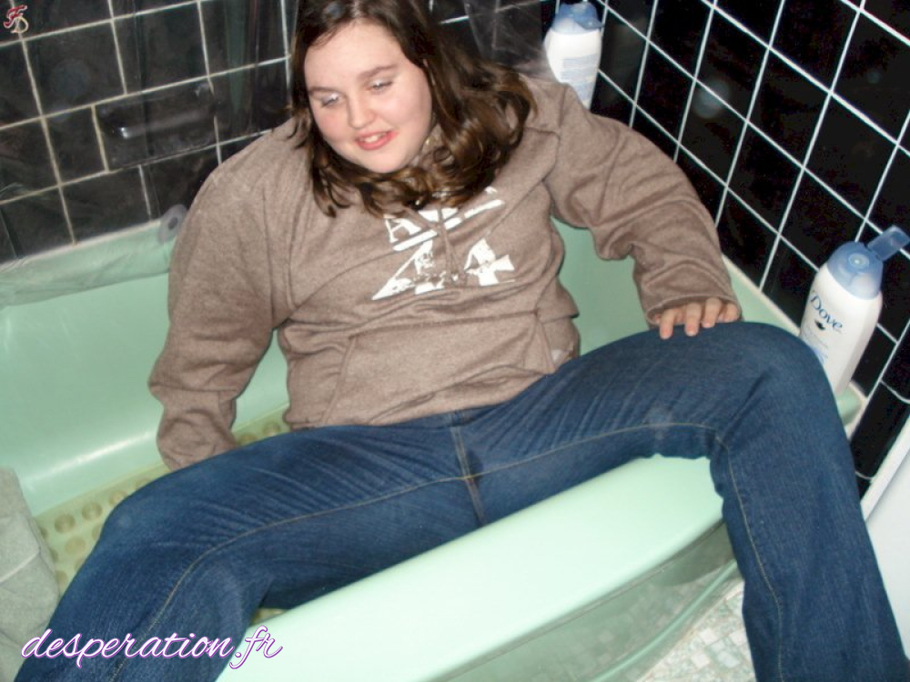 Désespérée, elle ne peut empêcher l'accident urinaire dans sa culotte bien collée à sa chatte