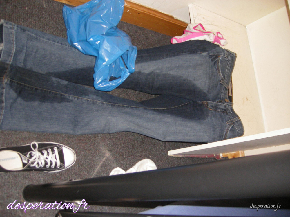 Désespérée la vessie pleine, elle est obligé de se faire pipi dessus.