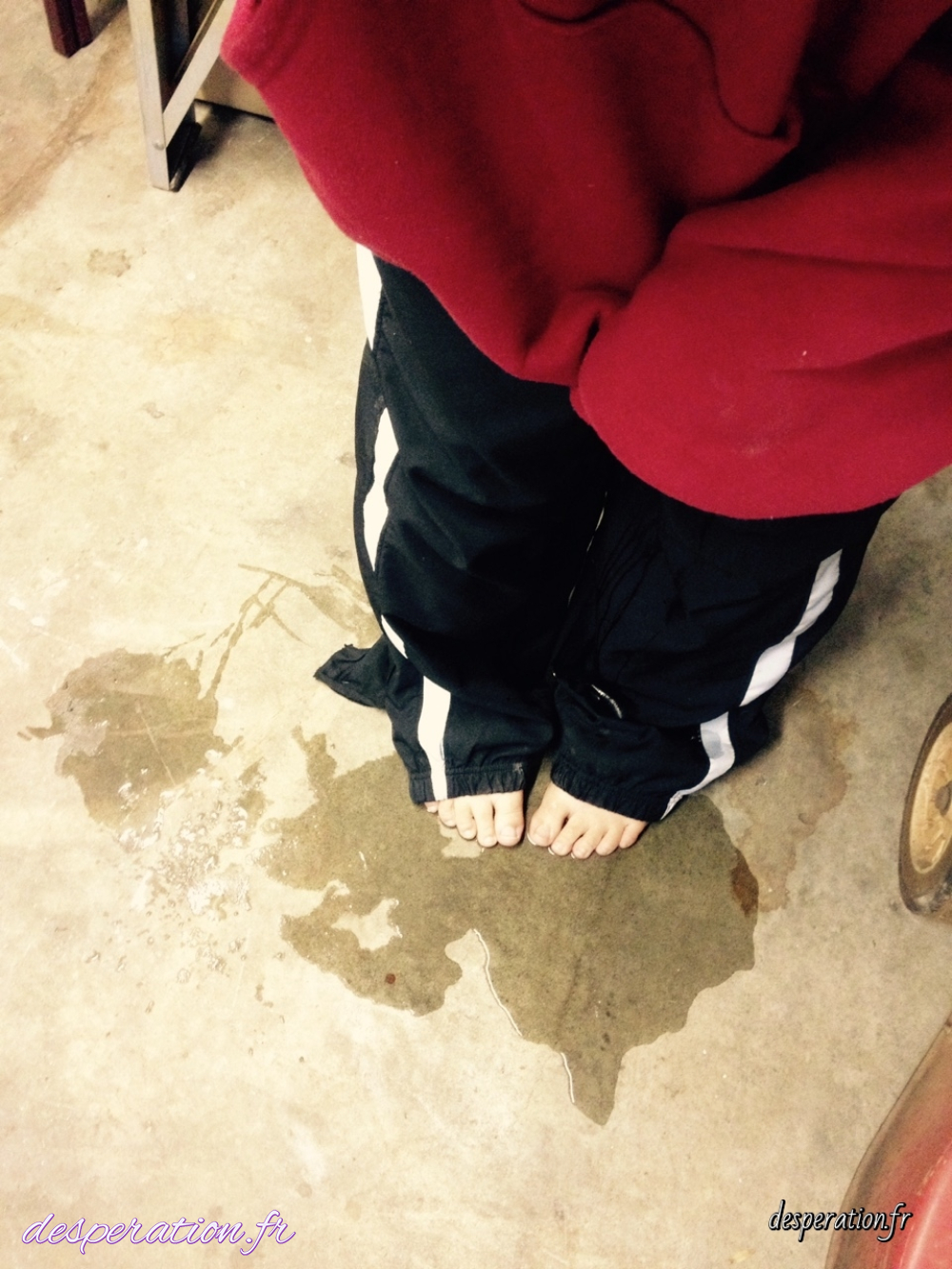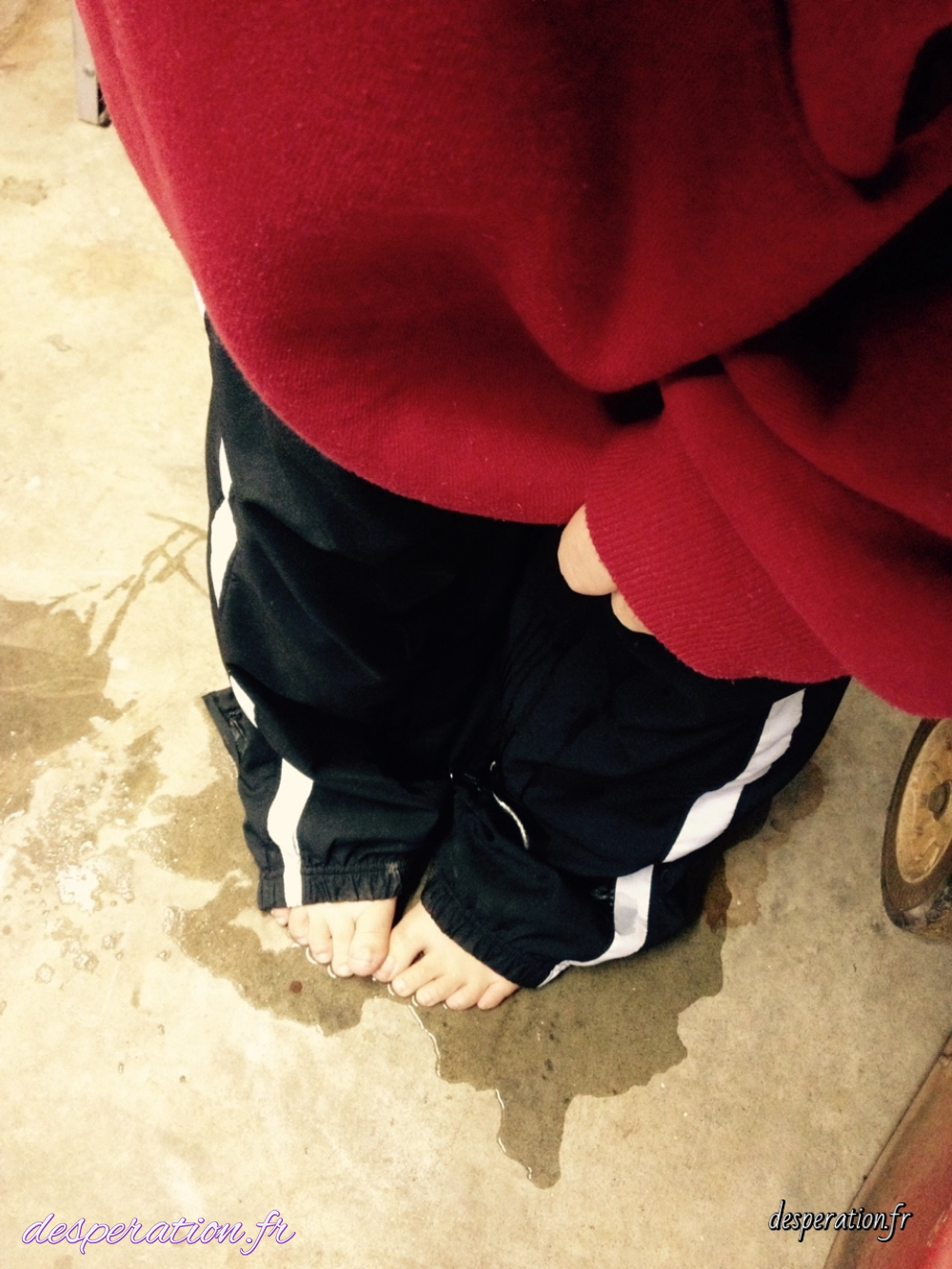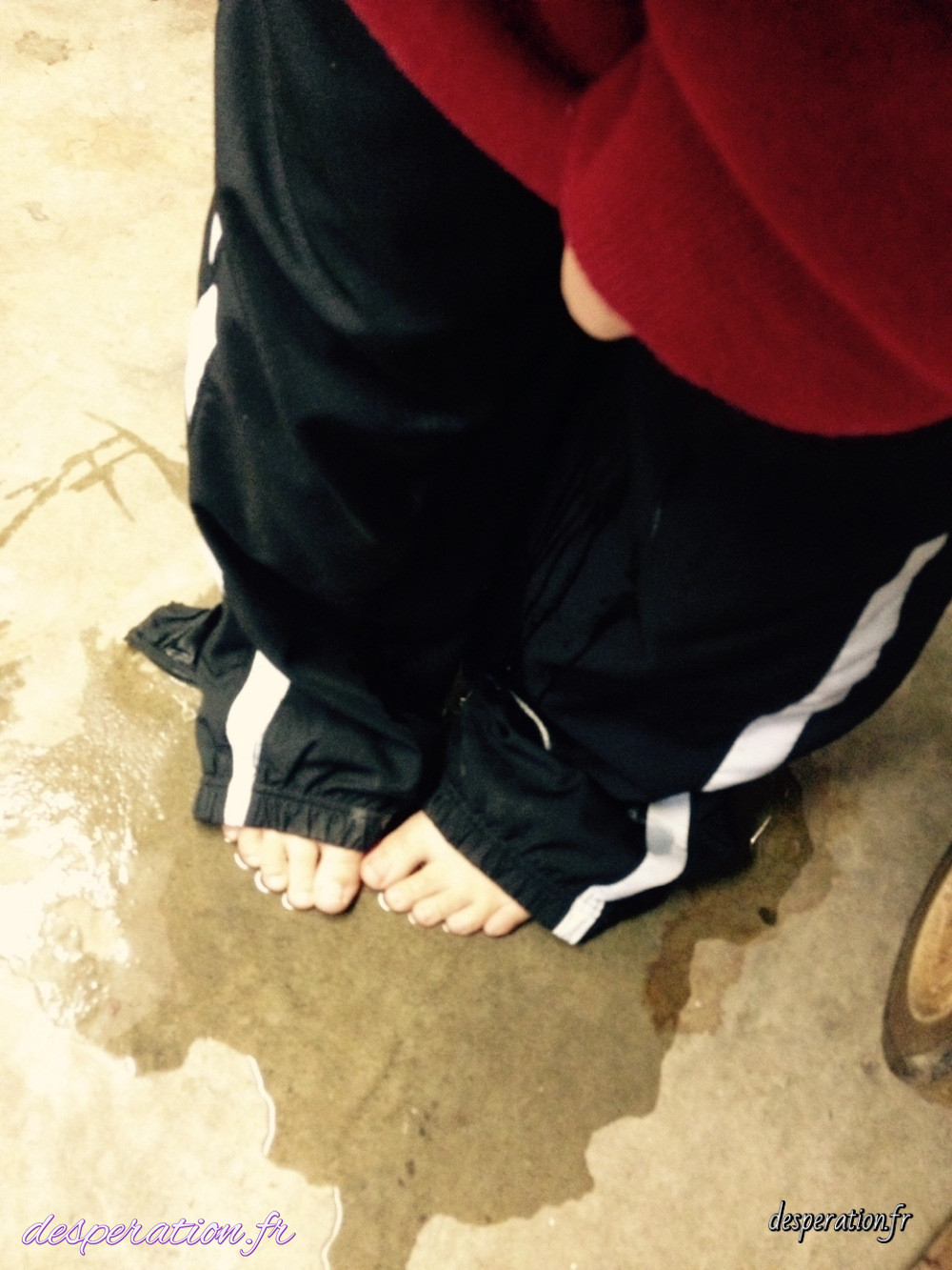 Désespérée la vessie pleine, elle est obligé de se faire pipi dessus.