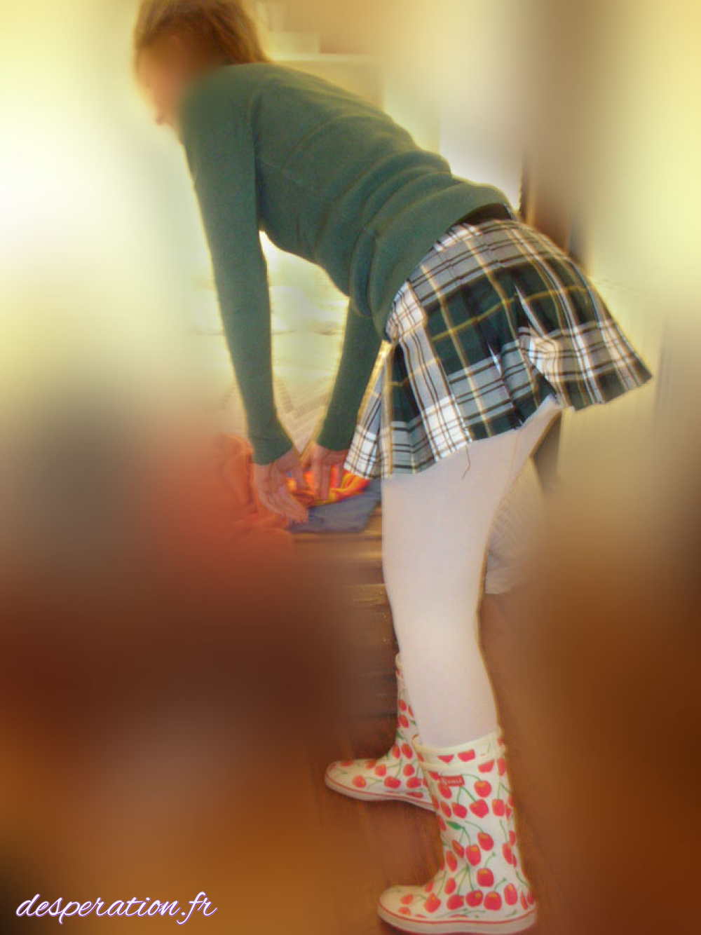 La vessie pleine, elle ne peut éviter l'accidenten couche culotte.