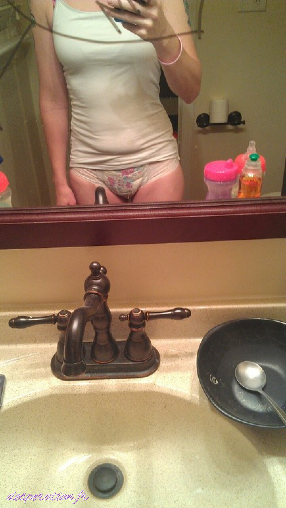 La pisseuse adore se faire dessusdans sa couche-culotte humide.