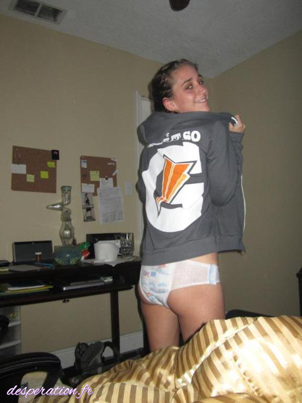 La vessie pleine, elle ne peut éviter l'accidentdans sa couche-culotte humide.