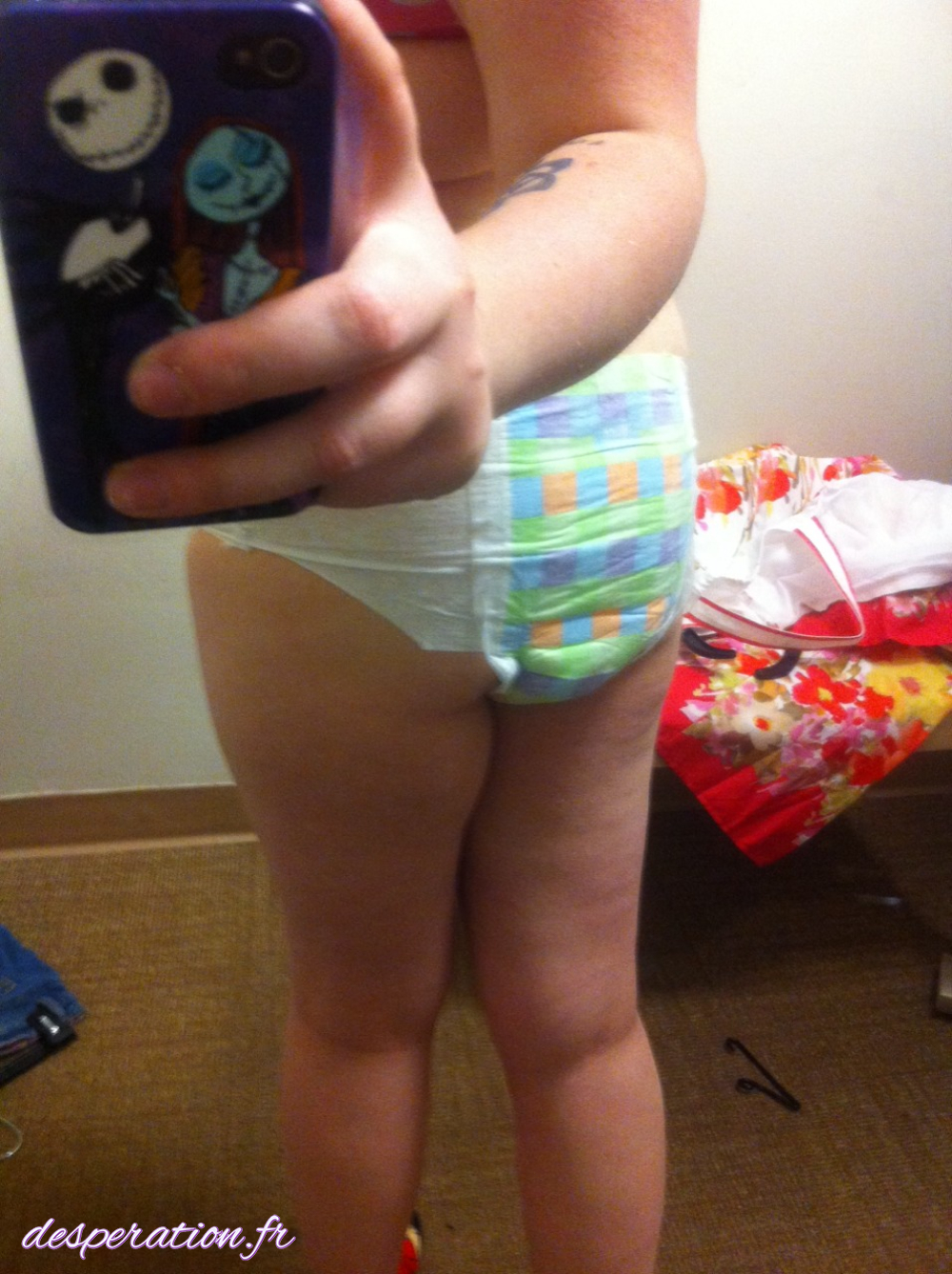 Elle a sa culotte toute mouilléedans sa couche-culotte humide.