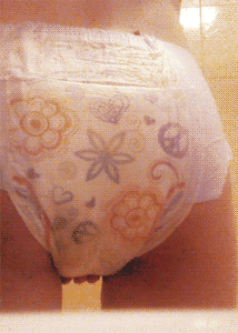 Elle a sa culotte toute trempéedans sa couche-culotte souillée.