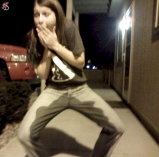 Alors que sa vessie faiblie elle finit par se lâcher dans son jean.
