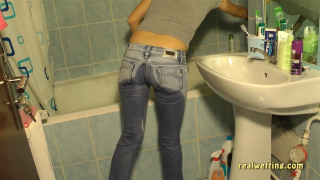 Une miss qui aime l'uro fait pipi dans son jeans trempé.