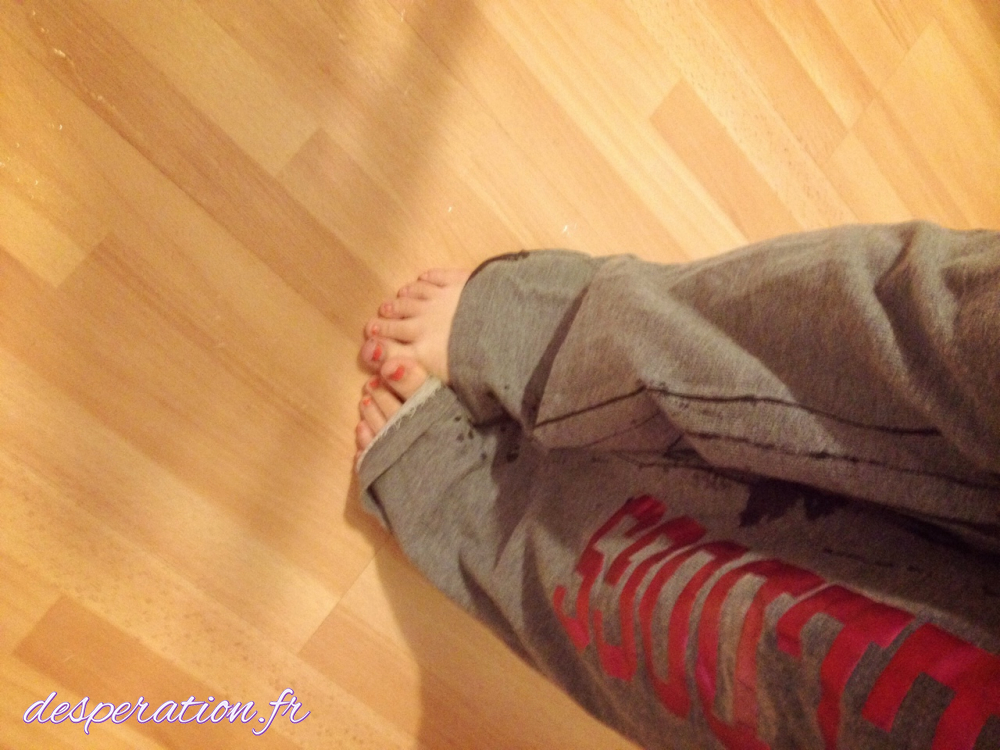 Sa culotte est toute mouillée dans son joggin trempé de pisse