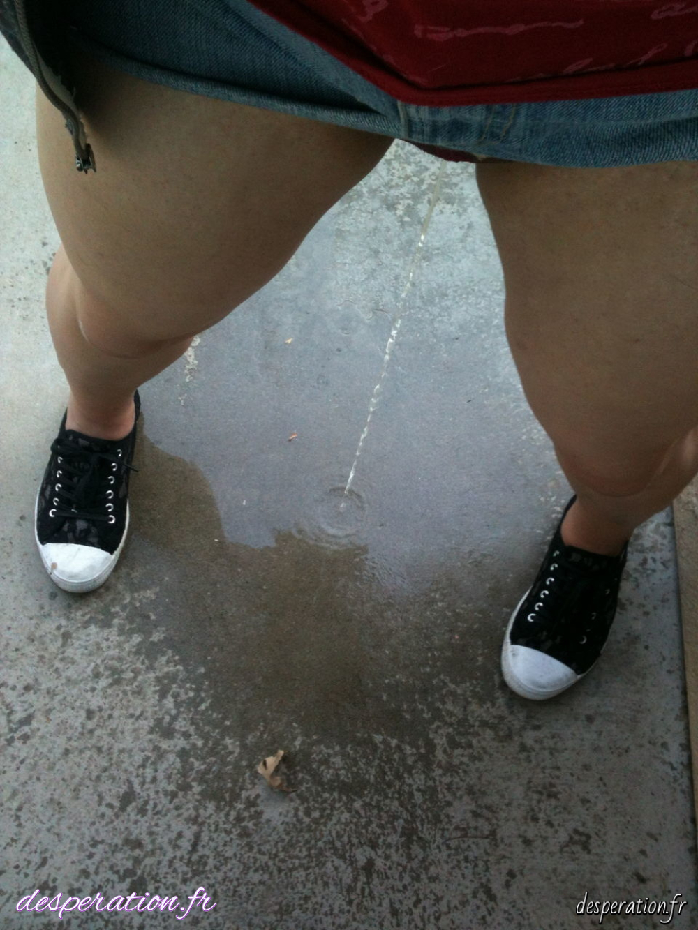 Elle fait pipi dans sa petite culotte alors qu'elle est en mini-jupe