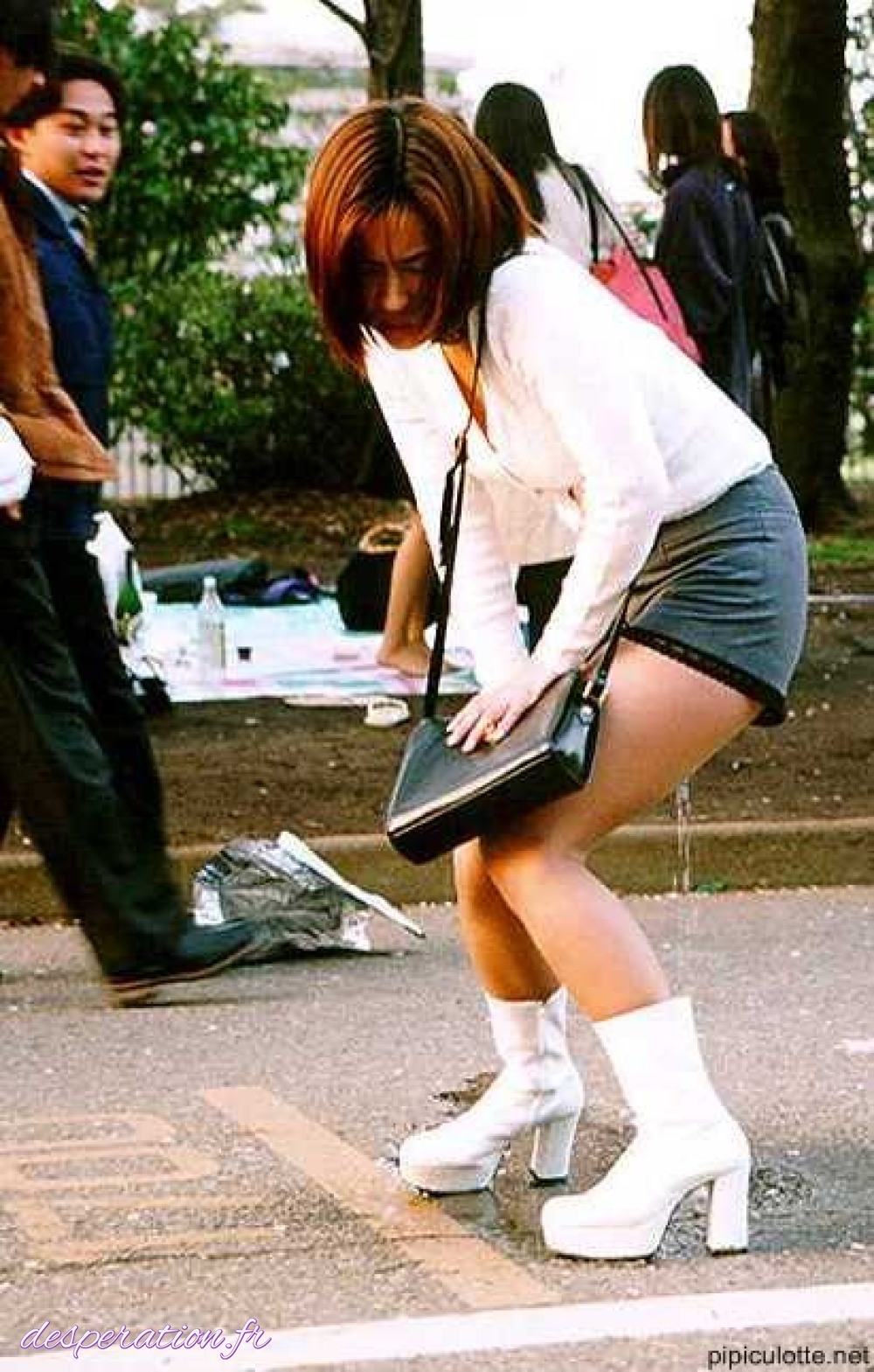 La malheureuse fait pipi dans sa culotte en jupe sexy