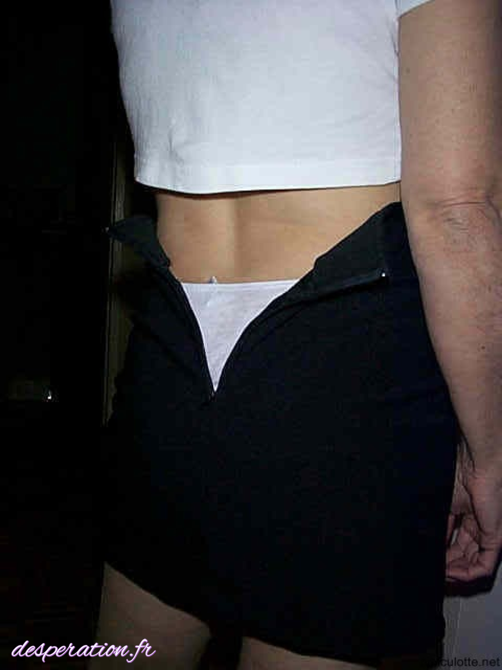 Une nymphe qui aime sentir la pisse dégouliner en jupe courte
