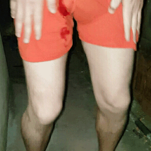 La vessie pleine, elle ne peut se retenir de pisser dans son mini-short mouillé