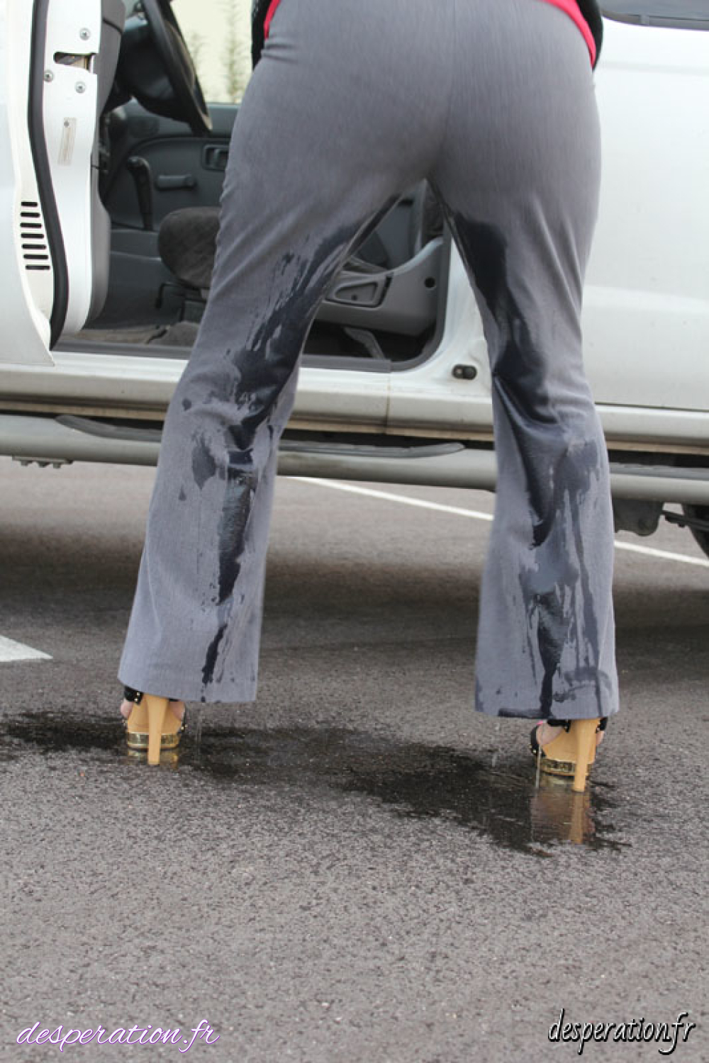 Cette femme a patienté tellement longtemps au volant qu'à peine sortie de la voiture sa vessie l'a trahie