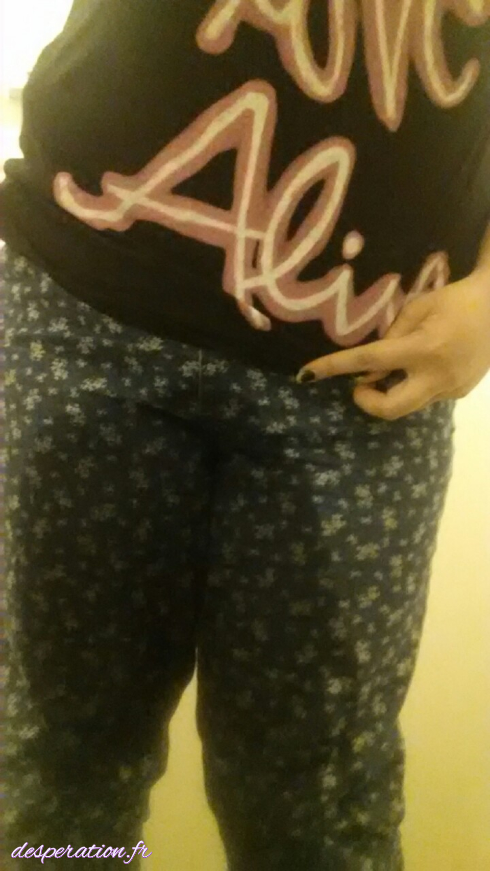 Désespérée, elle ne peut se retenir de faire pipi dans son pantalon sexy