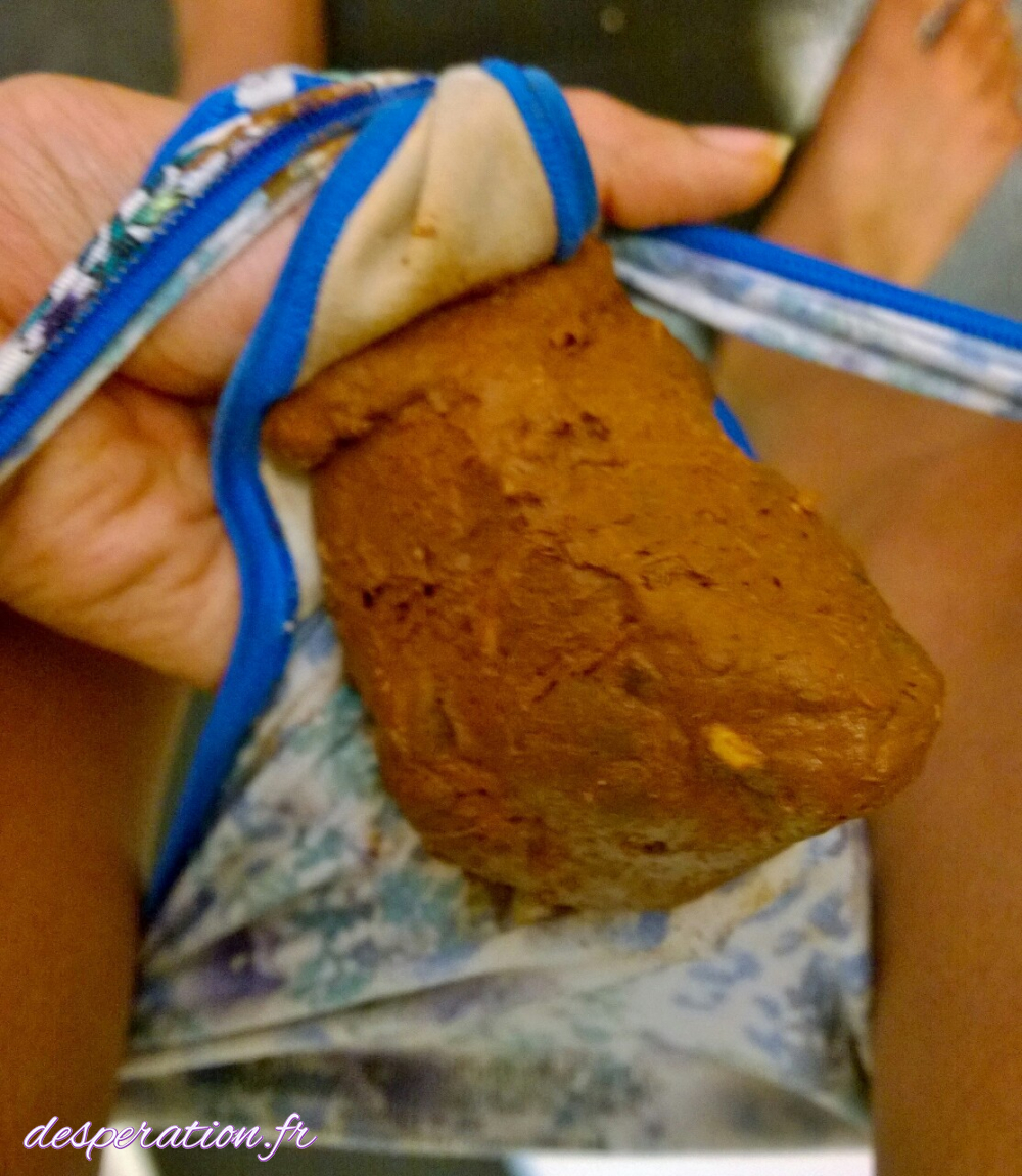 Désespérée, elle ne peut se retenir de faire caca dans ca culotte remplie de caca.