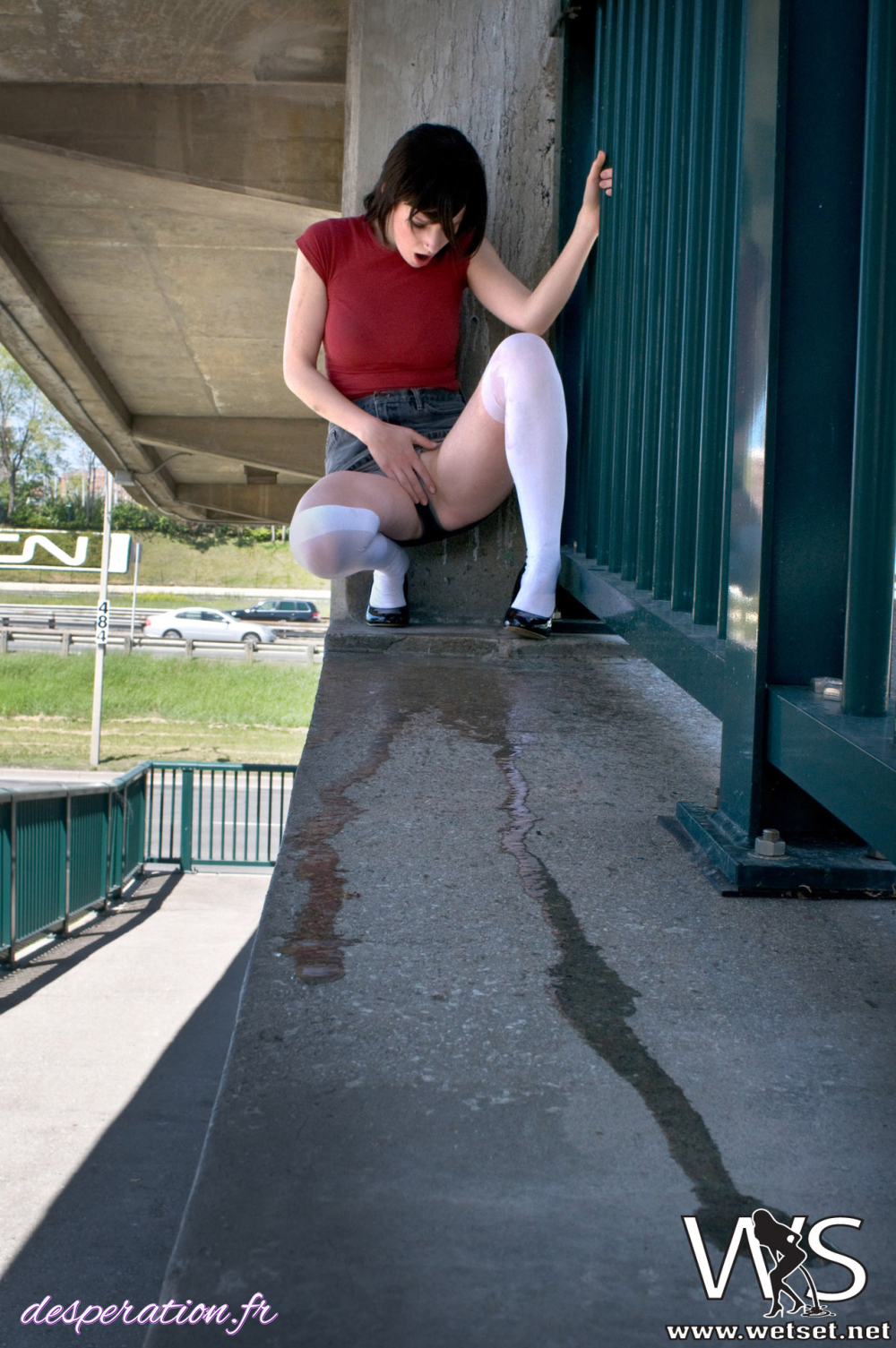 Quelle joie pour cette ondine de faire pipi dans sa culotte à travers sa culotte en coton en public.